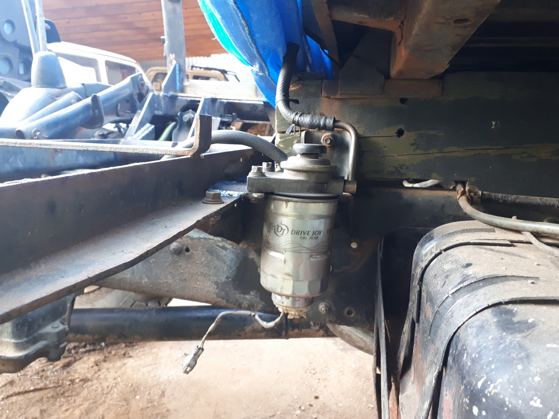 установил топливный фильтр тонкой очистки топлива с ручным подкачивающим насосом Toyota Dyna 15B..