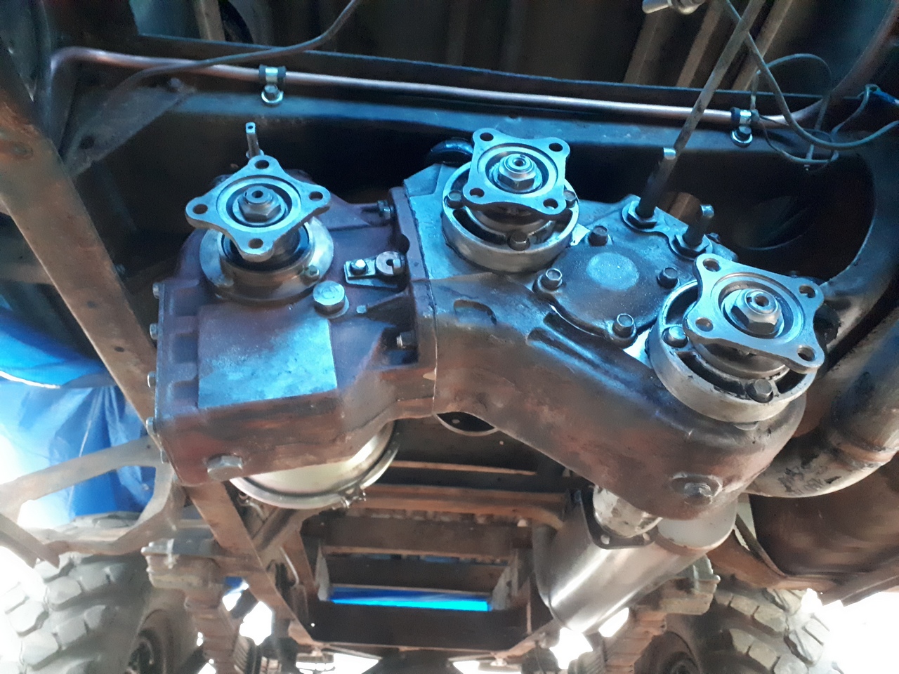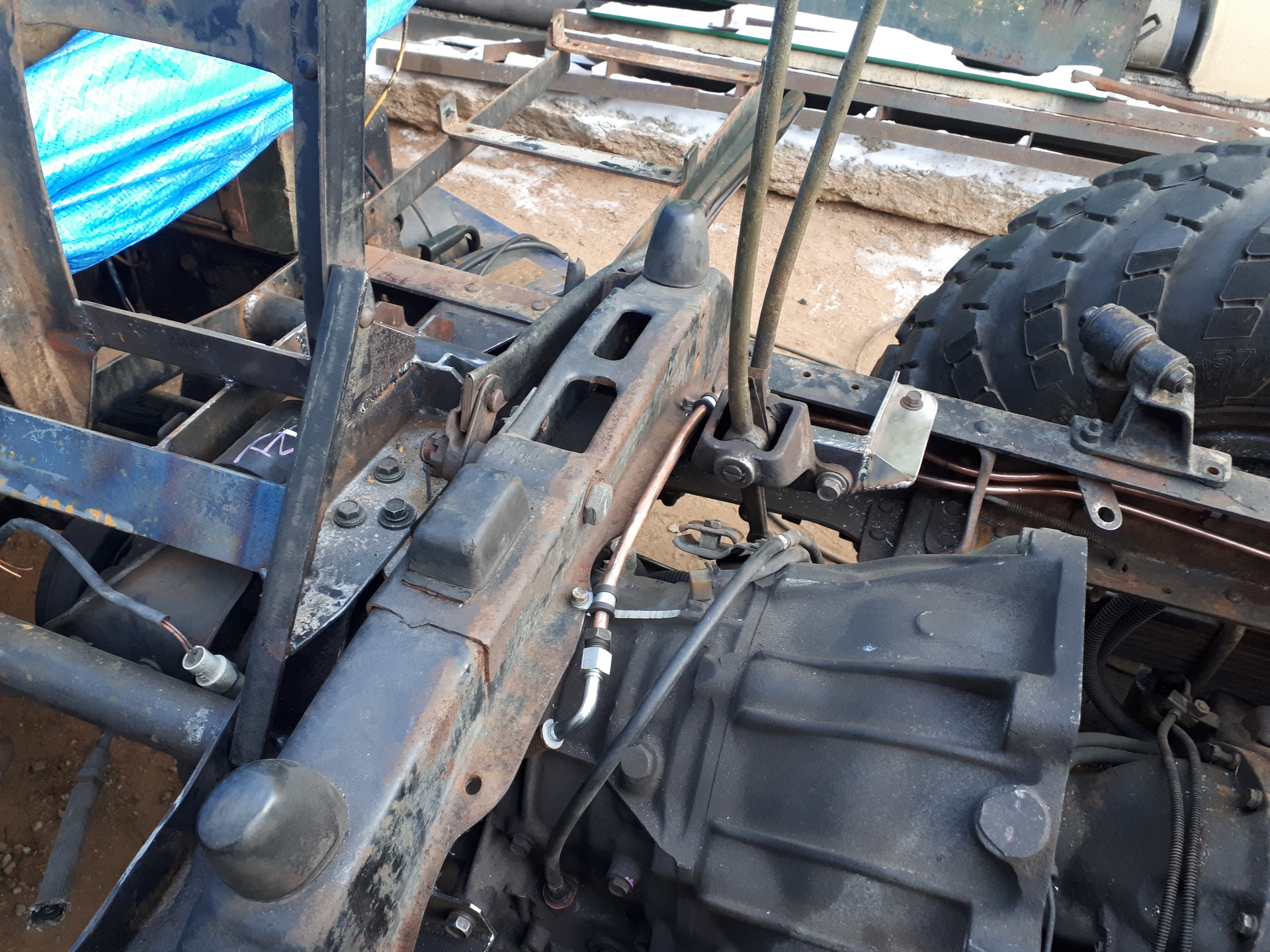 но несмотря на эти все метания я начал обрастать разными интересными деталюшками.. в 2006 году появилась раздаточная коробка и механическая лебедка от БТР60 ..