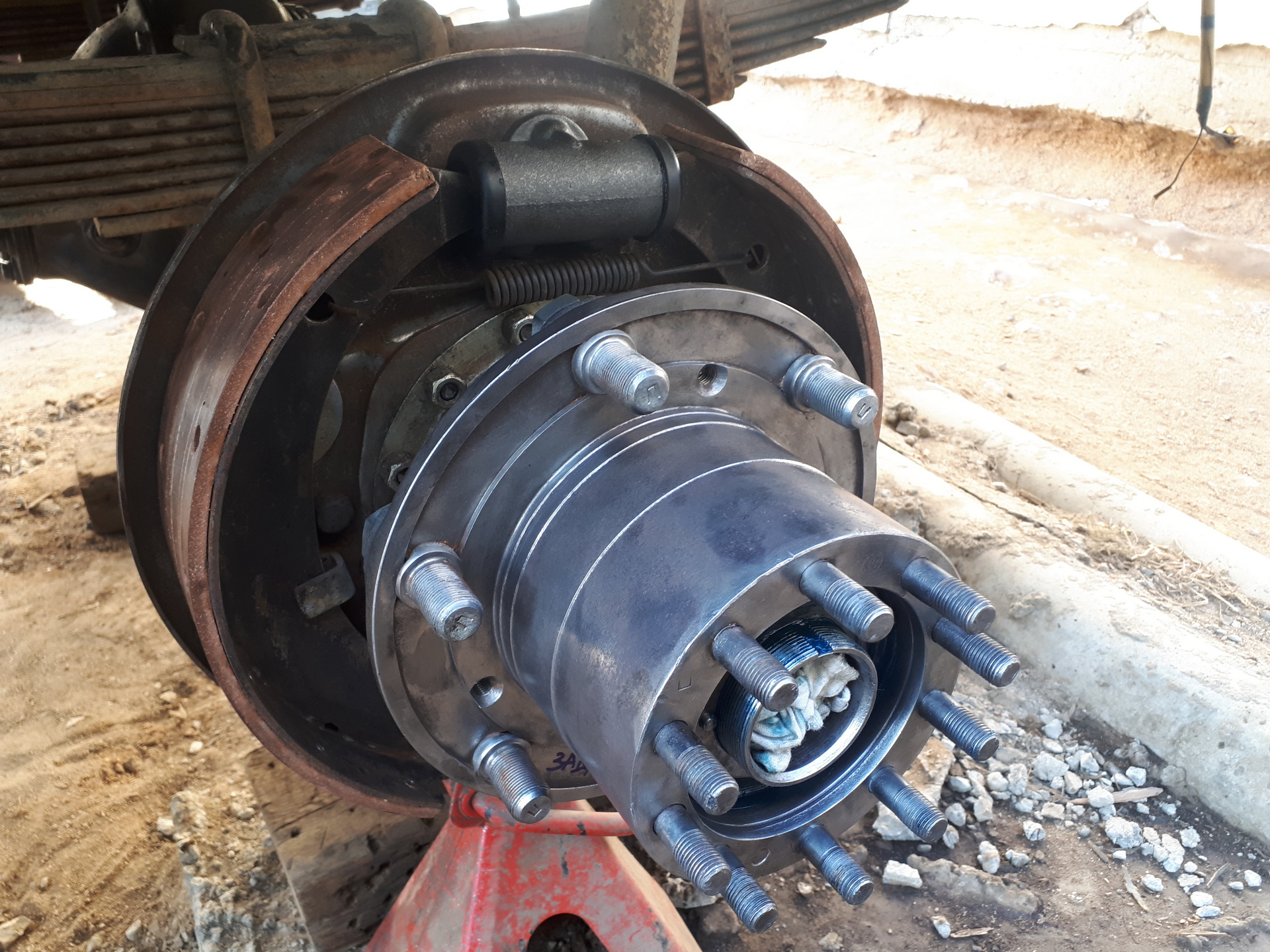 посадочное место на валу и барабане тормоза лебедки ГАЗ 66 обработана Loctite 8192