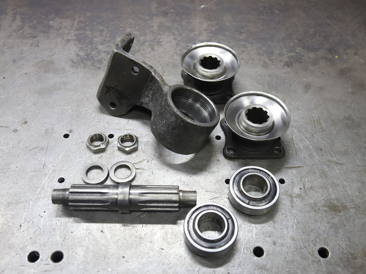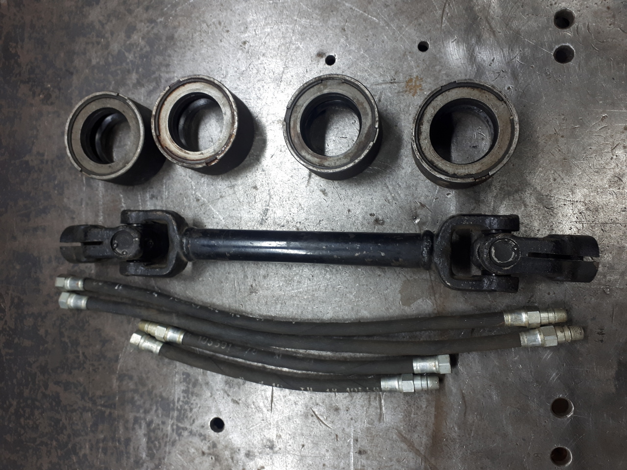 передний — 362 кг., правда на нем остались детали рулевых тяг и гидроцилиндр