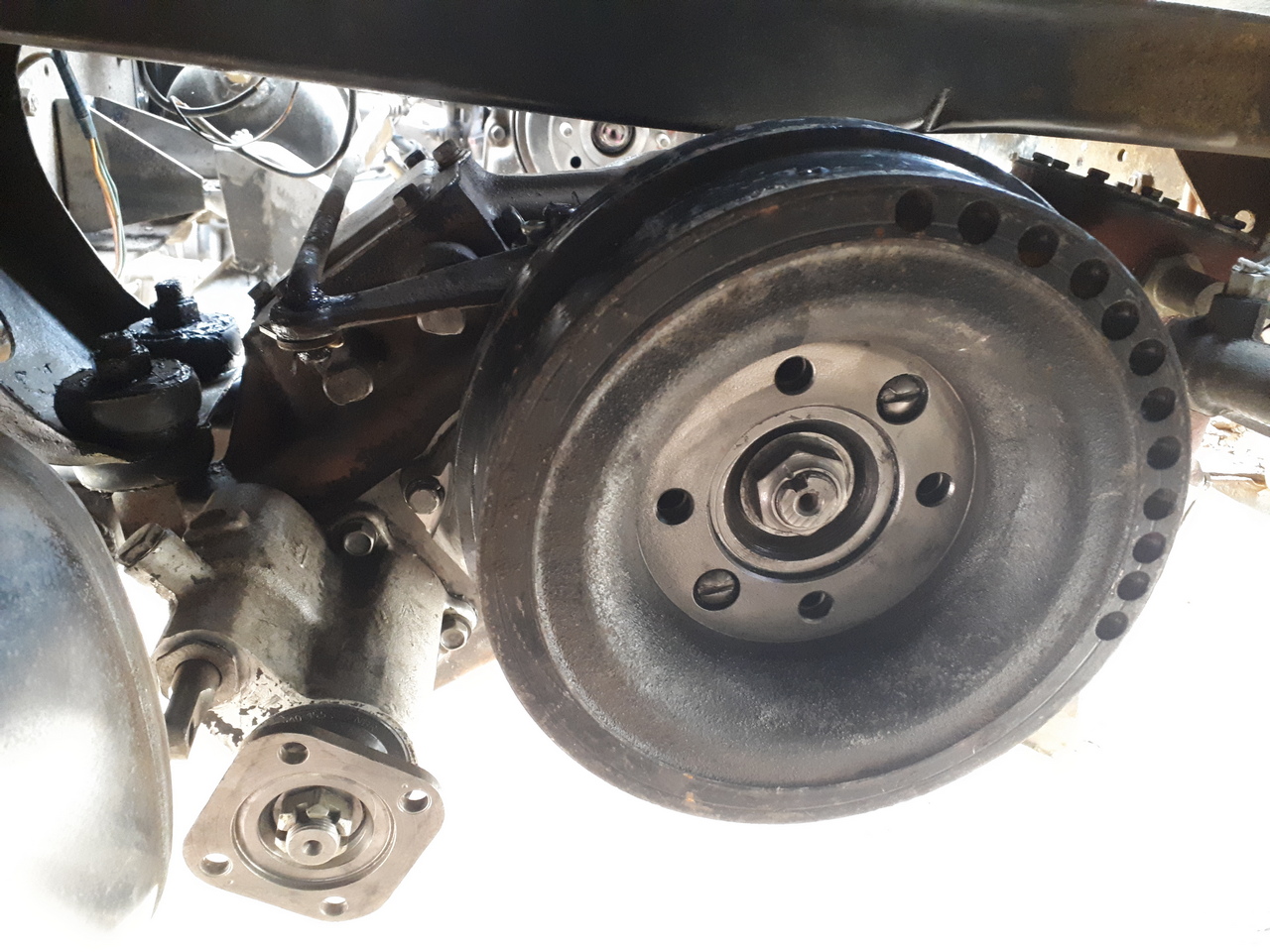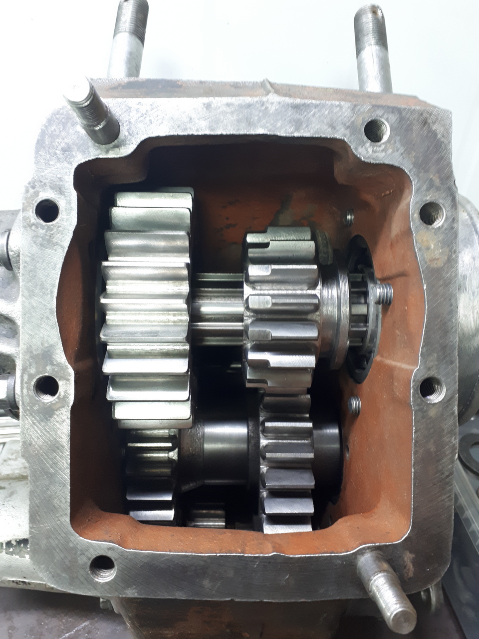 установлен задний редуктор.. один крепежный болт вверху заменен на шпильку