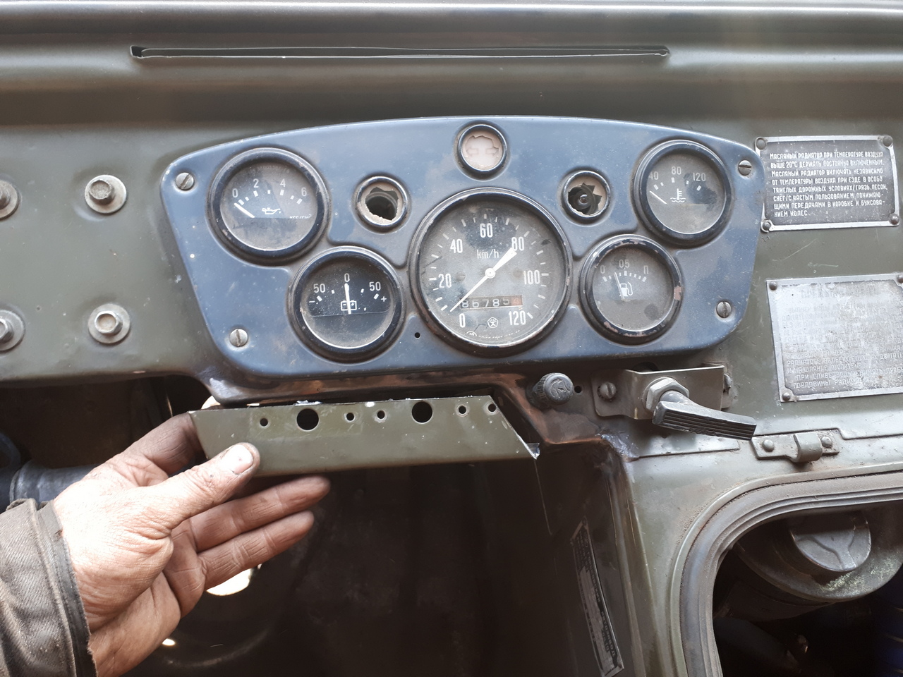 панель рычагов ГАЗ66 переделана под видоизмененный моторный отсек