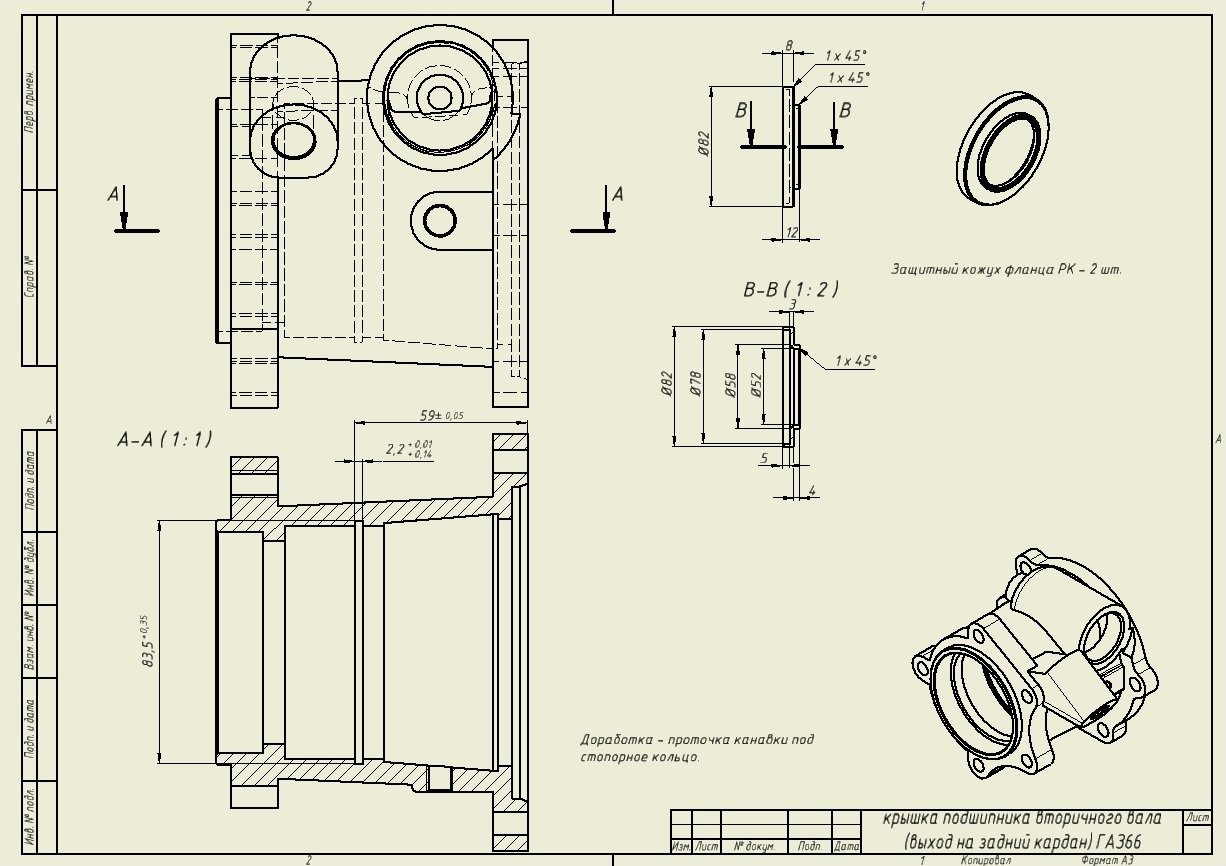 а именно сделать проточку в крышке под стопорное кольцо для заднего шарикового подшипника 208 ..