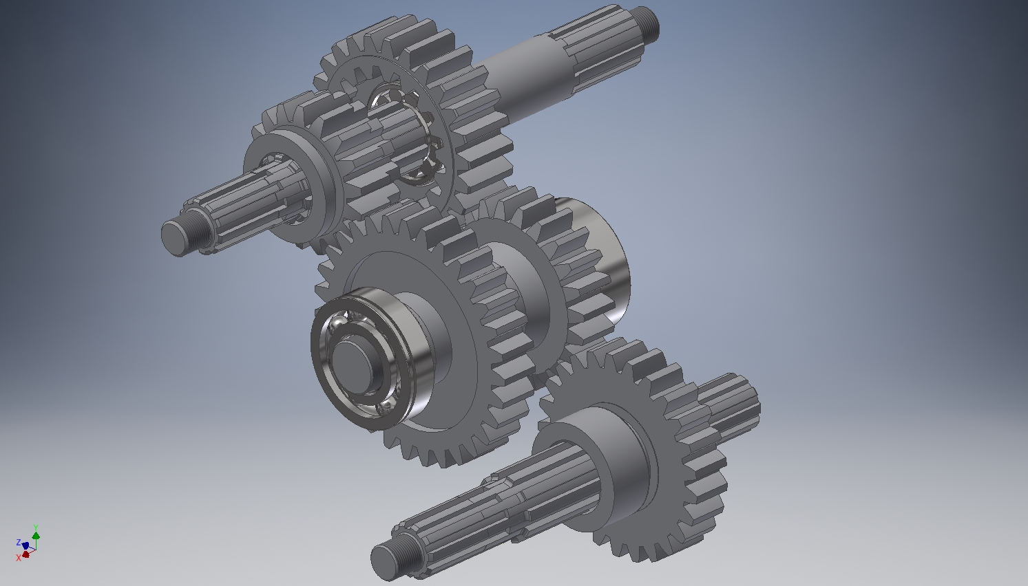 в парах зубчатого соединения задний выходной вал — промежуточный вал и промежуточный — передний выходной вал.